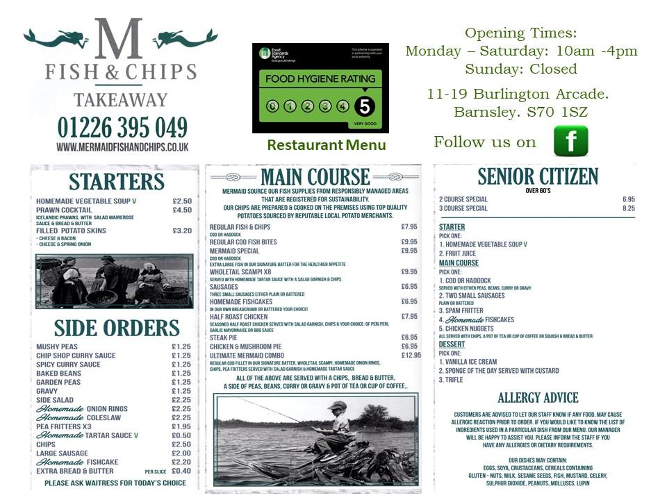 Mermaid Fish and Chips is nestled in Burlington Arcade, Barnsley, S70 1SZ, a convenient location for both locals and visitors. The ambiance feels homey and casual, perfect for unwinding with friends and family or enjoying a quick meal after exploring the area. The restaurant’s history is cherished, as it continues the legacy of quality and value that has defined it over the years. It spans a delightful blend of traditional British fare and contemporary dining options, making it accessible for every taste.